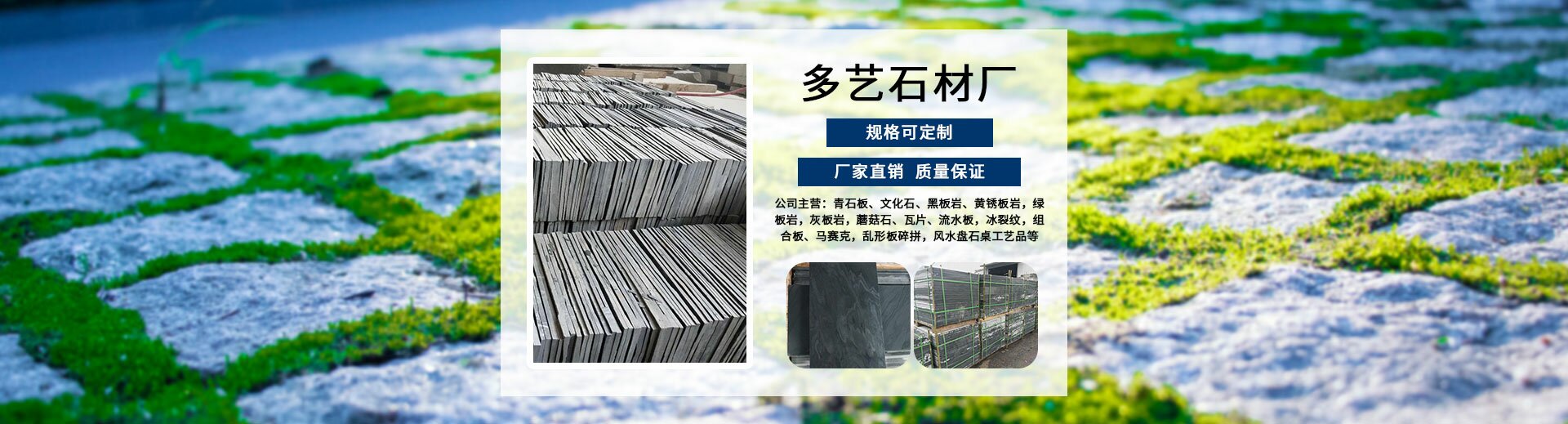 庐山市多艺石材厂坐落在美丽的庐山脚下,是一家石材生产、加工、销售为一体的石材企业。公司专注做板岩石材多年公司,工厂有生产设备,可私人订制各种规格板岩石材,能够保质保量按时完成生产任务,为广大客户朋友提供板岩石材用料解决方案。 公司主营:青石板、文化石、黑板岩、黄锈板岩,绿板岩,灰板岩,蘑菇石、瓦片、流水板,冰裂纹,组合板、马赛克,乱形板碎拼,风水盘石桌工艺品等。 公司秉着“诚信为本,顾客至上”的原则,坚持不懈的为客户提供优质的产品,优质的服务。公司成立至今,产品广受好评,供销国内各地大小程地。期待各界朋友莅临指导、参观和业务洽谈。广交朋友,携手共进,共创辉煌!